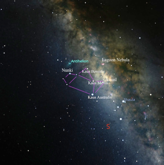 The Teapot asterism is essentially a pattern of stars within the Sagittarius constellation that form a distinct teapot shape. The body of the teapot includes Kaus Media and Kaus Australis, the handle is Nunki, the lid is Kaus Borealis and the spout is Alnasl. The teapot asterism is actually closest to the densest part of the Milky Way, so in our nightly skies, the rich beauty of the Milky Way rises above the spout like steam, pointing toward the galactic center.